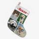 Calcetín Navideño Pequeño Moderno 4 Collage de fotos Cute Red Script Mascota