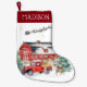 Calcetín Navideño Pequeño Monograma de camionetas de granjas rojas rusticas