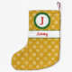 Calcetín Navideño Pequeño Monograma de Wreath su nombre Oro y Copos de nieve