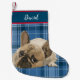 Monograma lindo diseño perro divertido en la foto de mascota de yeso azul Navidades pequeños Stocking.