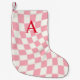 Navidades retro psicodélicos modernos y revisores rosa y blanco pastel a cuadros, con monograma personalizado