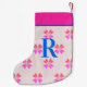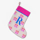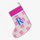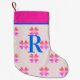 Calcetín Navideño Pequeño Monograma Navidades de flores rosadas calientes