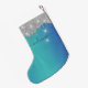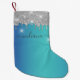 Calcetín Navideño Pequeño Monograma Plata Purpurina Azul Turquesa Nombre de