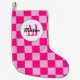 Calcetín Navideño Pequeño Monograma retro geométrico rosa cálido de luz cont