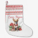 Detengan a Santa en sus huellas este año con las fabulosas medias de Cheer-Huahua, Navidades únicos. Estos calcetines fabricados con poliéster e impresos a todo color son demasiado bonitos como para llenarlos de carbón. Personalizar con un nombre de mascotas.