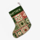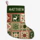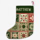 Excelente sensación de Navidad vintage para tu hogar cuando eliges este surtido de maravillosos tonos retro de rojo profundo, crema y verde bosque en un patrón vintage de atrevidos cuadrados de edredón, cada uno con un tema de vacaciones retro diferente. Un bonito Navidad con tu nombre.