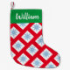 Los copos de nieve azules sobre un fondo de rojo brillante cubren esta reserva de vacaciones. Personalizar con el nombre de las iniciales de tu elfo favorito.