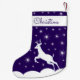 Navidades personalizados Stocking.Cute Reindeer saltando sobre blancos nevados, profundo cielo azul nocturno con brillantes estrellas. Feliz Navidad! Fuente escrita a mano de moda. Ambiente mágico Navidad. Perfecto para todas las edades y géneros. Se adapta a muchos estilos de decoración de Navidades.