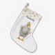 Fiesta en la población con un pato blanco Navidad adornado con una corona en el cuello y copos de nieve dorados en el fondo. Personaliza con tu nombre.