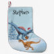 Calcetín Navideño Pequeño Nombre de acuarela de Raptor de Navidad de dinosau