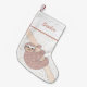 Este Navidad Stocking está decorado con un lindo y sonriente perezoso purpurina rosa rosado rodeado de estrellas de oro. Personalizar cambiando el nombre.