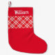 Calcetín Navideño Pequeño Nombre personalizado de Red Plaid ruso