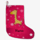 Calcetín Navideño Pequeño Nombre personalizado giraffe copos de nieve rosa