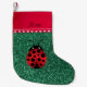 Calcetín Navideño Pequeño Nombre personalizado ladybug menta verde purpurina