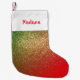 Calcetín Navideño Pequeño Nombre personalizado Red Green Gold Purpurina