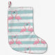 Calcetín Navideño Pequeño Patrón de fondo rayado Flamingo exótico