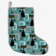 Calcetín Navideño Pequeño Patrón de gato negro de Mid Century