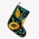 Calcetín Navideño Pequeño Patrón de girasol de fondo negro
