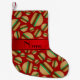 Calcetín Navideño Pequeño Patrón de hamburguesa roja de nombre personalizado