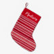 Añada un toque festivo a su manto de vacaciones, estos Navidades con medias lindas y personalizadas de Navidades. Las medias de los Navidades muestran su nombre en la parte superior en una fuente de escritura blanca con un fondo rojo. El diseño tiene un patrón de tejido de suéter rojo, burdeos y blanco. El surtido de Navidades, sencillo y elegante, impresiona a los huéspedes.