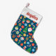 Calcetín Navideño Pequeño Patrón de Navidades alegres en azul
