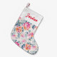 Calcetín Navideño Pequeño Patrón floral rosa y Verde azulado