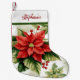 Calcetín Navideño Pequeño Patrón Holly de poinsettia verde rojo personalizad