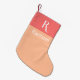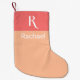 Calcetín Navideño Pequeño Peach de nombre de monograma elegante