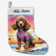 Calcetín de Navidad de Perro Caniche surfeando en una tabla de surf. Agrega esta imagen a otros productos. Agrega tu propio texto también. Muchos animales en mis tiendas.