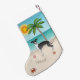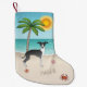 Calcetín Navideño Pequeño Perro De Higgys Negro Y Blanco En La Playa Tropica