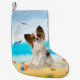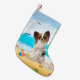 Calcetín Navideño Pequeño Perro Papillon en la playa