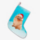 Calcetín Navideño Pequeño Perro Pomerania sentado en un Gorra de Navidades d