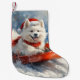 Calcetín Navideño Pequeño Perro Samoyen en el manto Navidades que la nieve