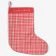 Calcetín Navideño Pequeño Personalizado de Gingham Plaid rojo y blanco vinta