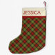 Bodega personalizada con un patrón rústico de Navidades en verde musgo y rojo, con acentos dorados. Diseñado para colgar frente a cualquier dirección. Disponible en dos tamaños y tres tipos de tela.