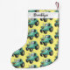 Calcetín Navideño Pequeño Personalizado de tractores verde feliz
