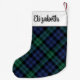 Navidades de calado presenta un moderno diseño de monograma personalizado con un clásico azul marino y un reloj negro de caza escocés con estampado escocés. Personalice el texto del guión del personalizado con cada nombre de miembro de la familia. Incluye el mismo diseño a ambos lados del almacén.