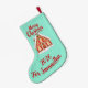 Discover the ultimate Christmas magic with our personalized Gingerbread House Stocking! This isn't just a stocking; it's a enchanting spot where Santa will be delighted to leave his gifts. Featuring a whimsical, snow-covered gingerbread house adorned with colorful candies and confetti on a soft turquoise-green background, this design is a true winter fairy tale.