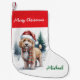 Calcetín Navideño Pequeño Personalized Goldendoodle Dog in Santa Hat