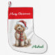 Calcetín Navideño Pequeño Personalized Goldendoodle Dog in Santa Hat