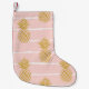 Calcetín Navideño Pequeño Piña de oro, fondo de verano rayado.