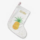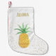 Añada este Navidad festivo Stocking a su decoración de temporada. Está decorado con una piña tropical de acuarela rodeada de estrellas doradas. Personalizar cambiando la palabra Aloha por un nombre. Acuarela original © Michele Davies.