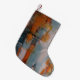 Calcetín Navideño Pequeño pintura abstracta naranja, blanca y verde azulada