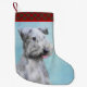 Calcetín Navideño Pequeño Pintura de Cesky Terrier - Arte de Perro Original.