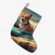 Calcetín Navideño Pequeño Pintura de surf de Corgi Beach
