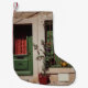 CALCETÍN NAVIDEÑO PEQUEÑO PUERTA DE MADERA VERDE CON PLANTA VERDE