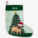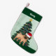 Calcetín Navideño Pequeño Pug en Santa Hat Árbol de Navidad Monograma verde