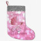 Calcetín Navideño Pequeño Purpurina de plata rosado de Bokeh del carro de