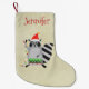 Calcetín Navideño Pequeño Raccoon En Santa Hat Atrapado En Luces De Navidad