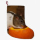Calcetín Navideño Pequeño rata encapuchada negra asustadiza que come las